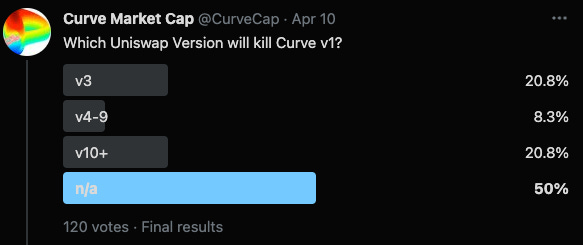 At any rate, the research all reinforces that Curve v1 was exceptionally designed. In slightly different research study, among a [presumably biased] sample, we found the expectation is that Curve v1 is robust enough to survive indefinitely.