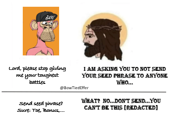 So if NFT enthusiasts don’t particularly care about gas prices, perhaps they care about readability? Judging by the occasionally crude infosec skills on display among some NFT holders, we’re assuming this is not a priority.