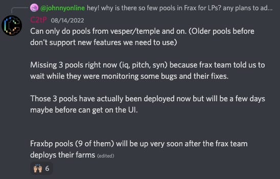 For those who missed the nuances of these developments, Frax v3 pools were deployed in late July, and the team has been carefully monitoring the rollout since.