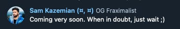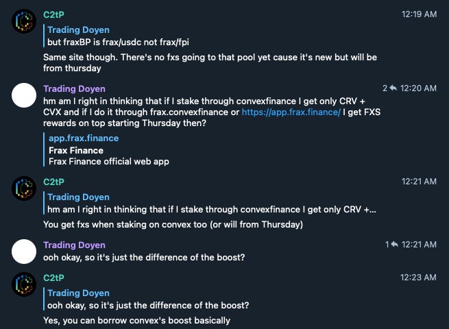 The extremely knowledgeable Convex community has been patiently waiting throughout the bear market for deepened partnership between Convex and Frax. As always, Sam offers great life advice (not financial advice) for such situations.