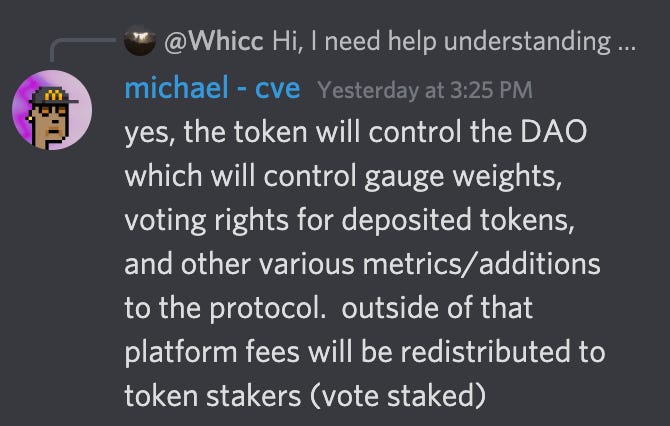 They also are planning a $CVE token within their tokenomics, which would earn platform fees and voting rights.