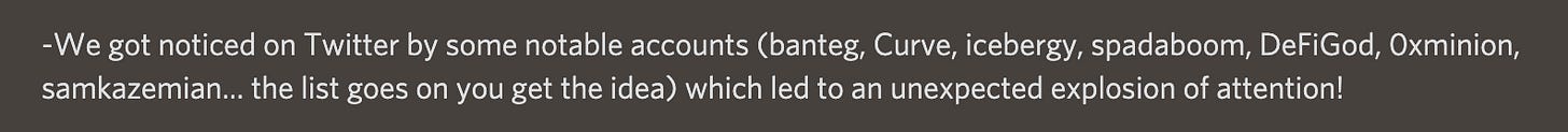 Even in its larval state, Curvance clearly has strong interest. At this point they could very easily raise this cash directly from interested Curve whales. Whale capital could provide them much both better control over their product and more useful connections than obsolete VCs. They have tons of options, let’s see how they ultimately exercise them.