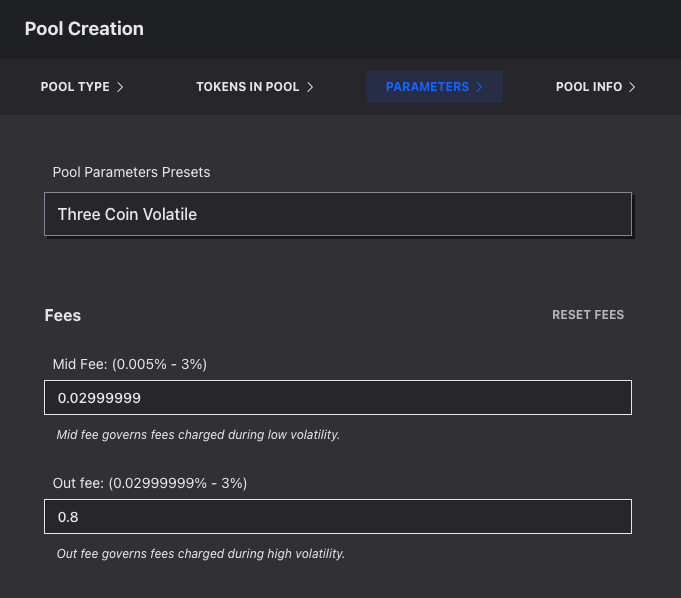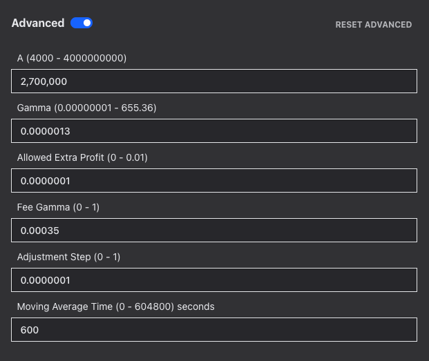 In most cases, users who launch their own v2 pools through the Curve UI just accept the default settings. It makes sense, how else could they make an informed decision on how to set these parameters?