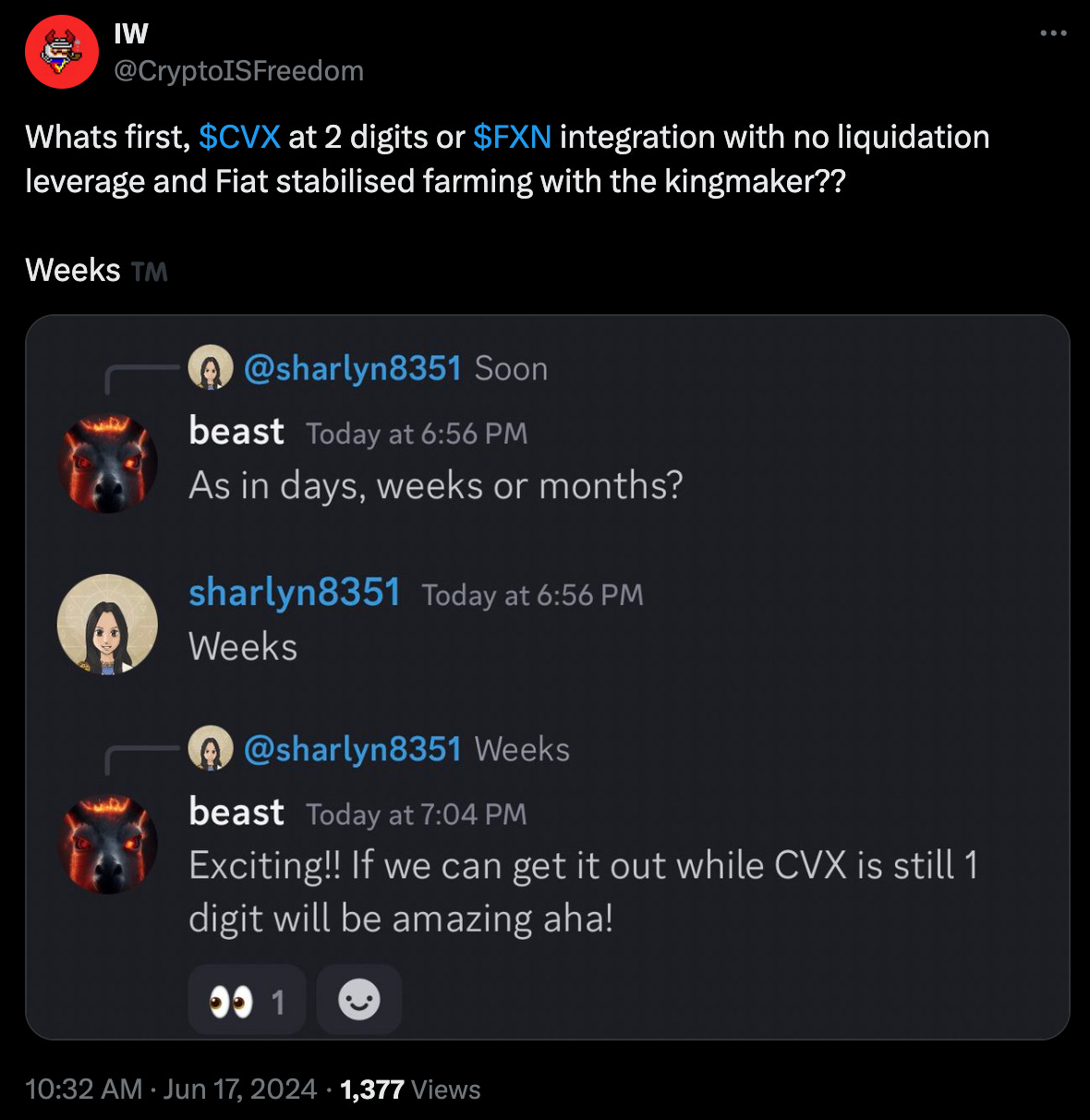 Disclaimers! As a DeFi maxi, author is long $CRV, $CVX, $FXS, $PRISMA and FXN 0.00%↑