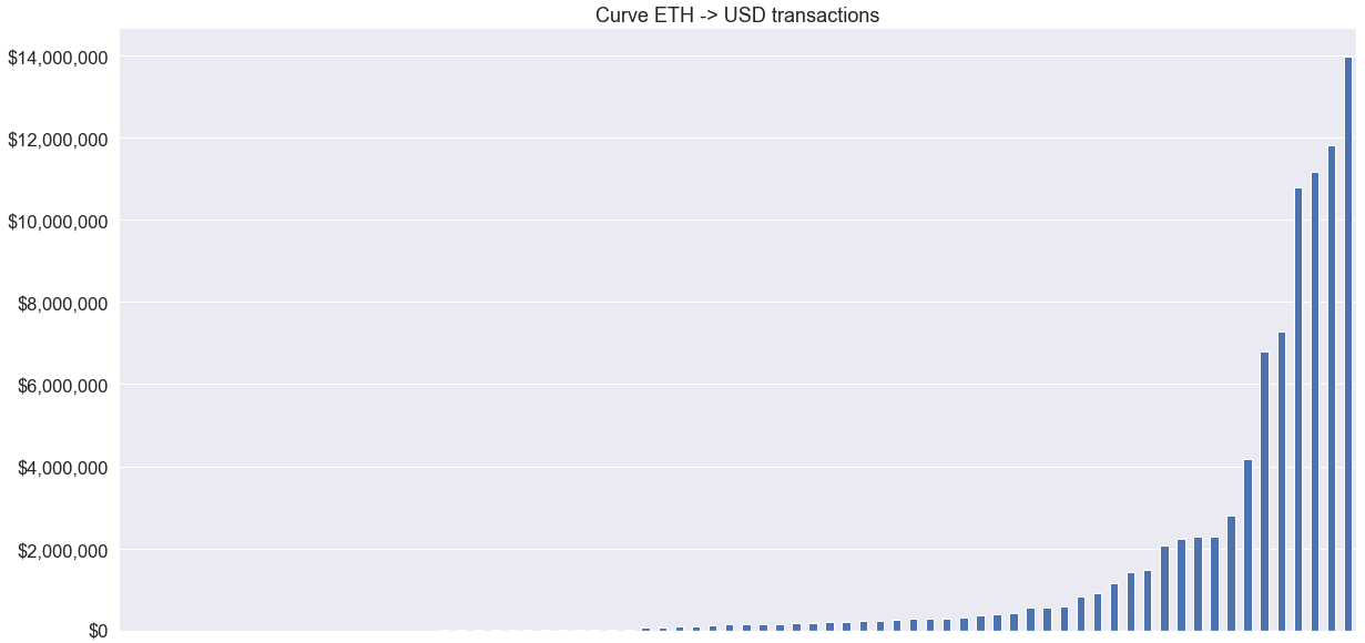 A few whale transactions of over $10MM apiece weighted this pretty heavily. In fact, if you look at the median transaction size, ETH to USD hardly shows up.