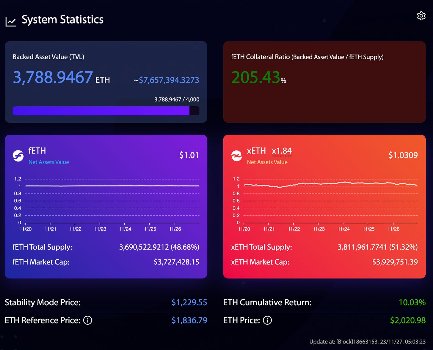 In practice, $fETH has ended up as one of the stronger pegged stablecoins, thanks to the relatively stagnant market, trading currently over peg by a penny. Yet there’s still been significant demand for a pure stable. Protocol f(x) can do this simply by adjusting their system to hold a beta of 0% instead of 10%, and transferring all the volatility to $xETH.