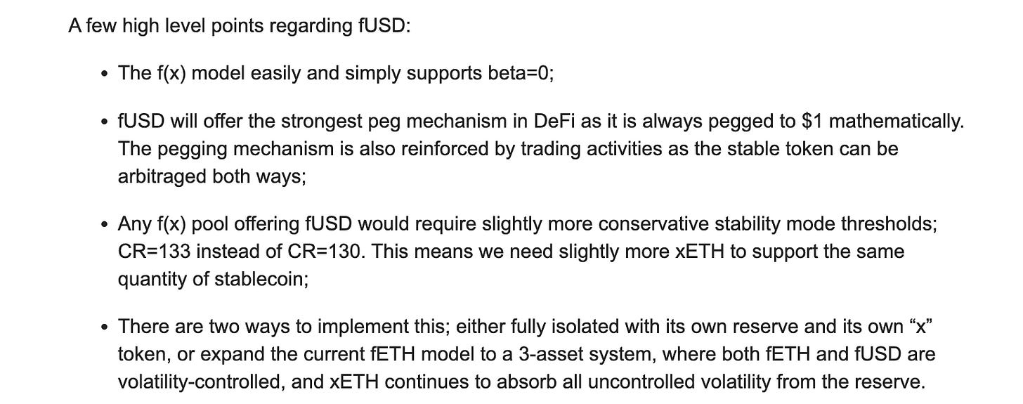 The governance forum kicks off discussion on a possible approaches to $fUSD, (the “f” of which appears to reference the eponymous Protocol f(x), not an expletive):