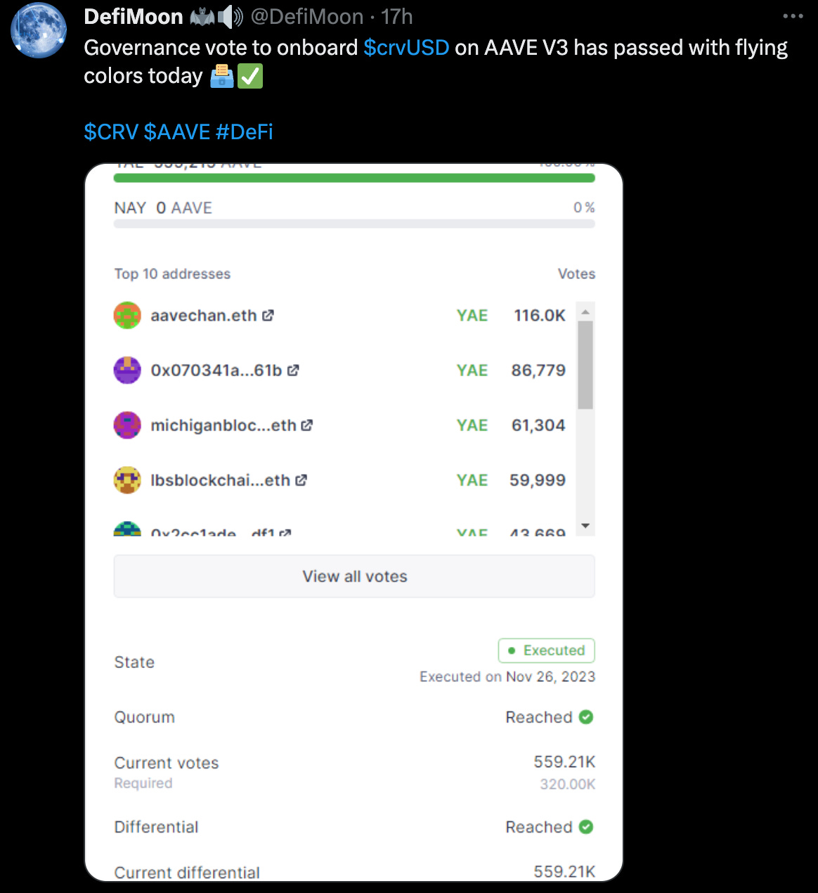 The stablecoin is also being onboarded onto AAVE v3.