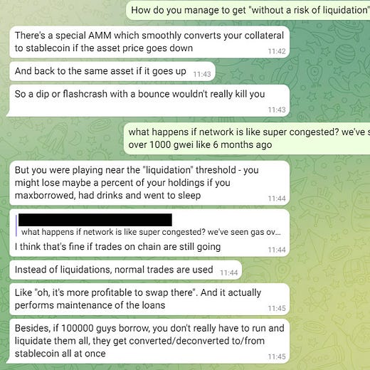 In the chat here, Mich hints at the UX for $crvUSD during such periods, saying that instead of liquidations, normal trades are used: “Like ‘oh, it’s more profitable to swap there.’ And it actually performs maintenance of the loans.”
